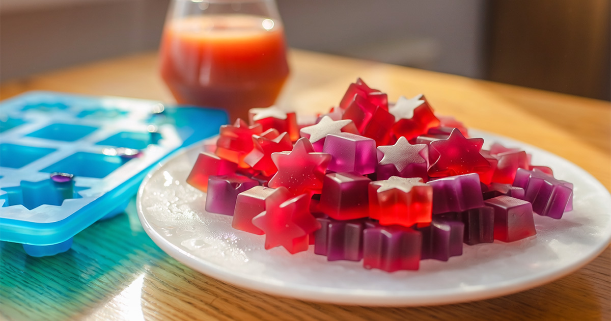 We’re sharing a tried-and-true recipe to inspire you below. The fruit snacks it makes are a bit more gummy and chewier than the store-bought version. Please monitor young children when introducing this or any new foods to reduce the potential risk of choking.